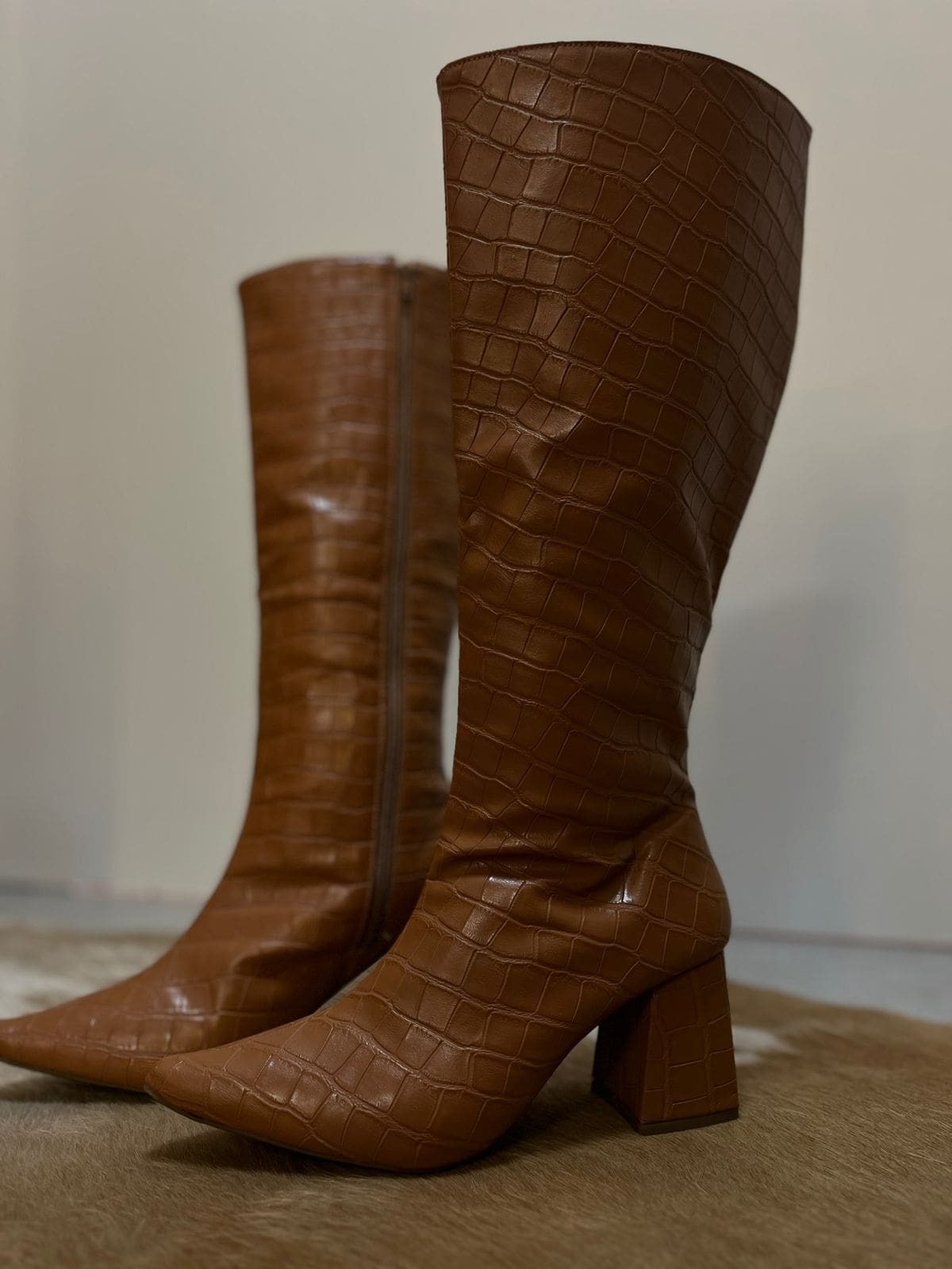 Bota Cano Longo Croco Marrom – elegância com textura marcante!