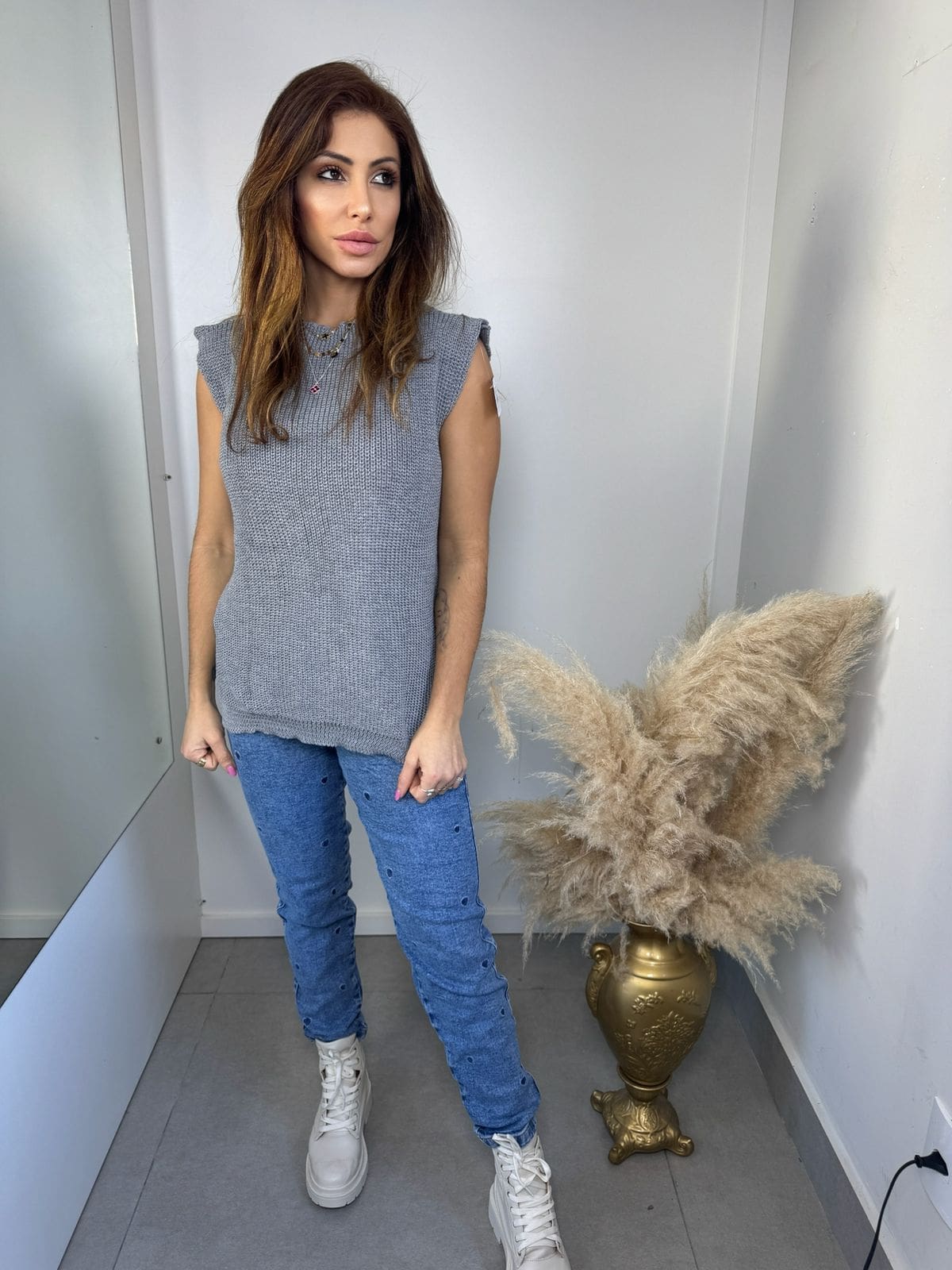 Versátil, estiloso e atemporal: o Colete de Tricô Sem Mangas é a peça perfeita para quem busca praticidade sem abrir mão da elegância. Com modelagem reta, gola redonda e acabamento canelado, ele combina com diversas propostas de looks – do mais despojado ao sofisticado. Ideal para usar sozinho em dias amenos ou sobrepor com camisas nos dias mais frescos.